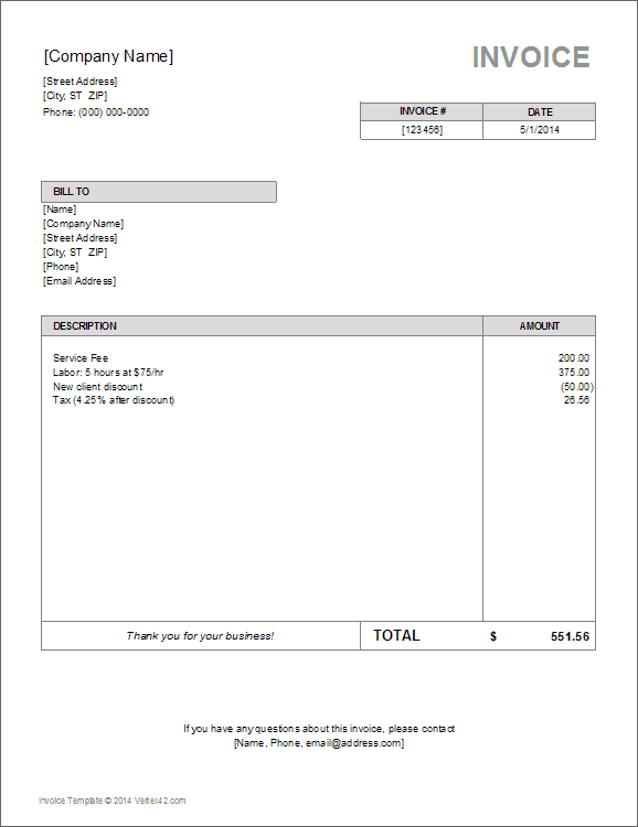 Source: cdn.vertex42.com Created by professional graphic designers, our invoices are fully customizable, are saved securely online and are easy to create using our invoice generator. The invoice lays out exactly what work was done and what was charged for that work so there is no confusion.